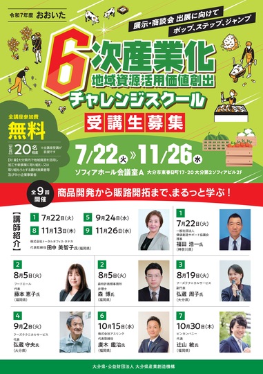 「令和7年度おおいた 6次産業化地域資源活用価値創出チャレンジスクール」にて、代表 森が講師を務めます